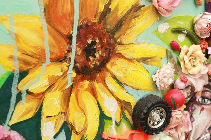 I AM YOU, A Beautiful Woman With a Beard est une peinture à l’huile et collage sur papier représentant une sublime femme à barbe — ou un homme à seins — telle une reine ou un roi, se détachant sur un fond fleuri exubérant. Cette œuvre est une réponse à la montée de l’extrême droite et de la xénophobie. Rien ne sert de se voiler la face : en nous résident tous les humains, même ceux que l’on ne veut pas voir, et qui sont pourtant les plus extraordinaires.